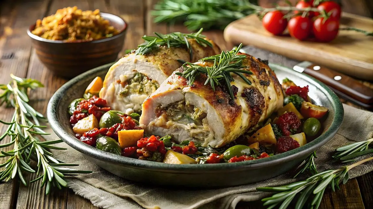 🍗 Fylt kyllingrull fra ovnen – saftig, smakfull og enkel middag 🍅🥔