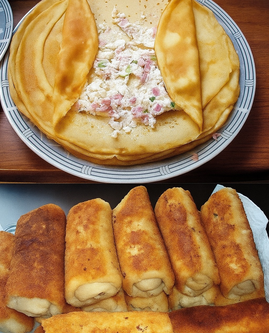 Sprø pannekakeruller med skinke og ost – en uimotståelig favoritt 🥞🧀🥓